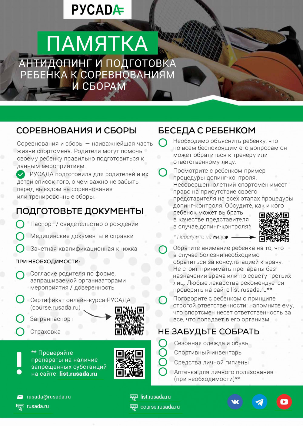 Памятка для родителей по подготовке к соревнованиям и сборам