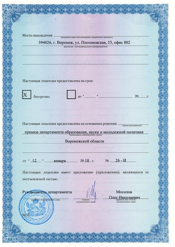 Сканы лицензий с отметкой о прекращении их действия 09.11.2018г.