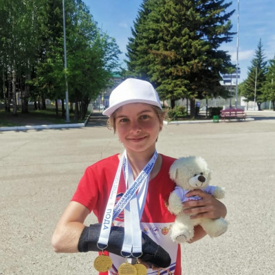 Золотухина Иванна (Т 35-36) стала победителем: в беге на 100м, в метании мяча одной рукой с разбега и в прыжке в длину с разбега.